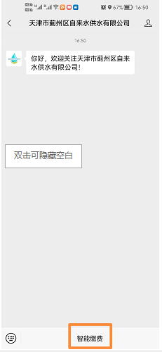 掃描二維碼關(guān)注微信公眾號(hào)或微信搜索“天津市薊州區(qū)自來(lái)水供水有限公司”公眾號(hào)并關(guān)注,如圖