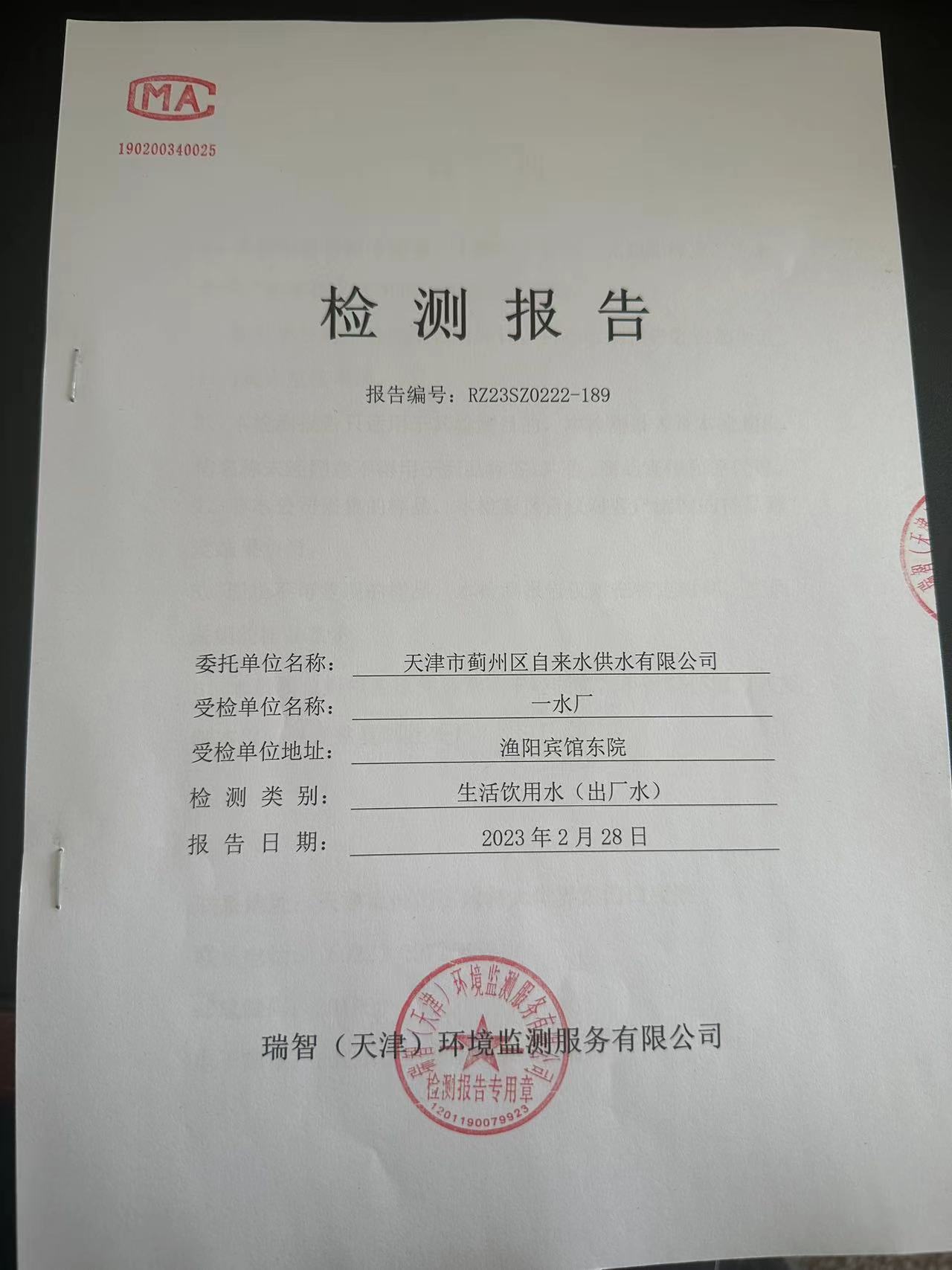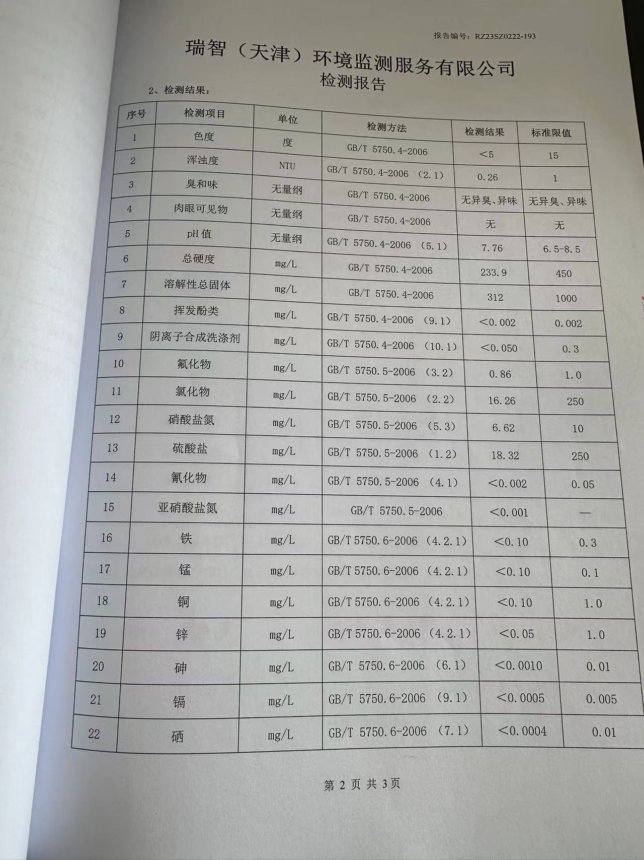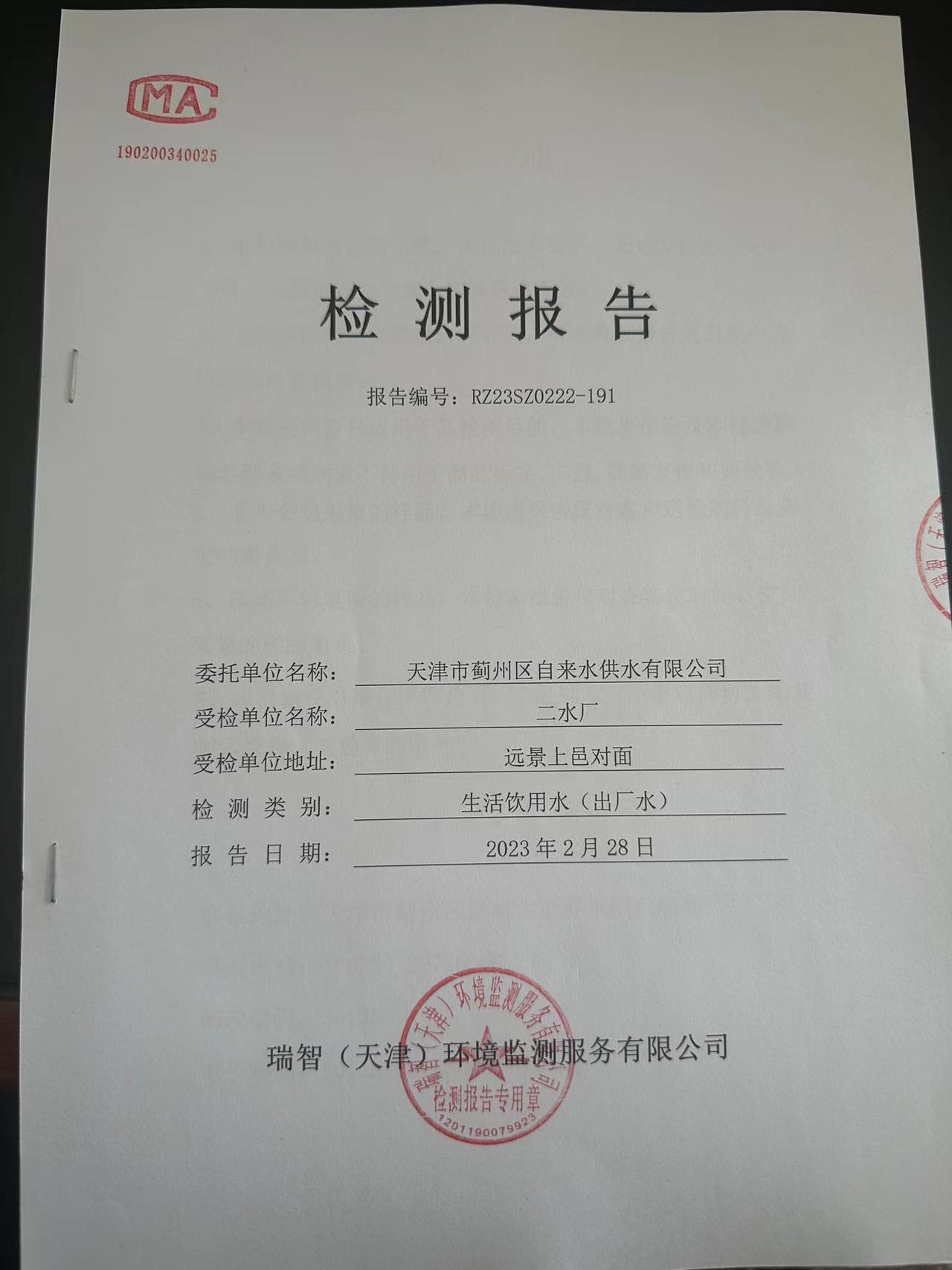 2023年2月份水質檢測報告