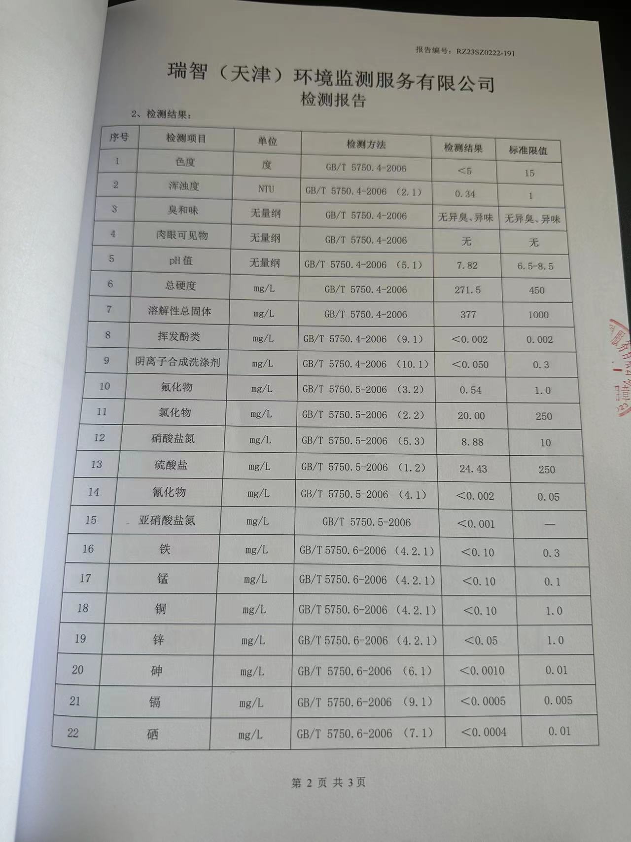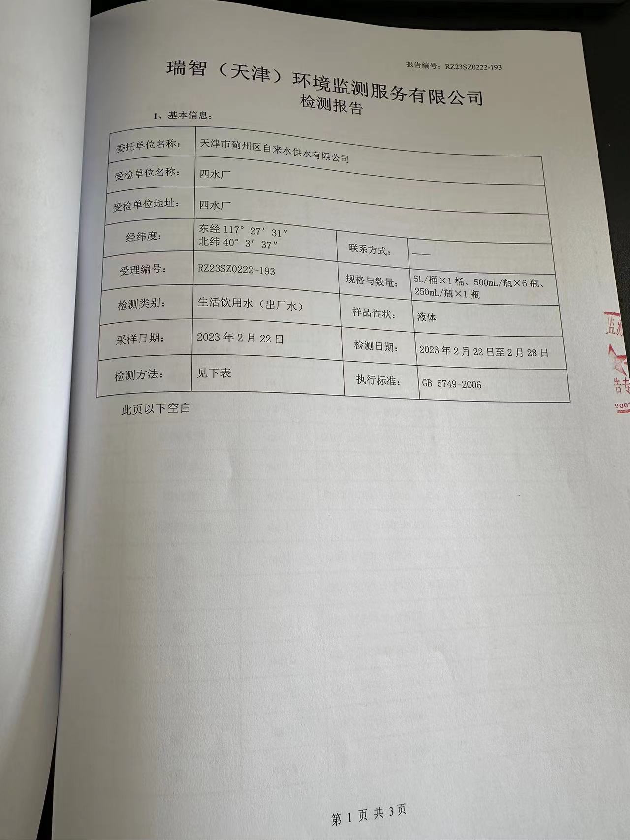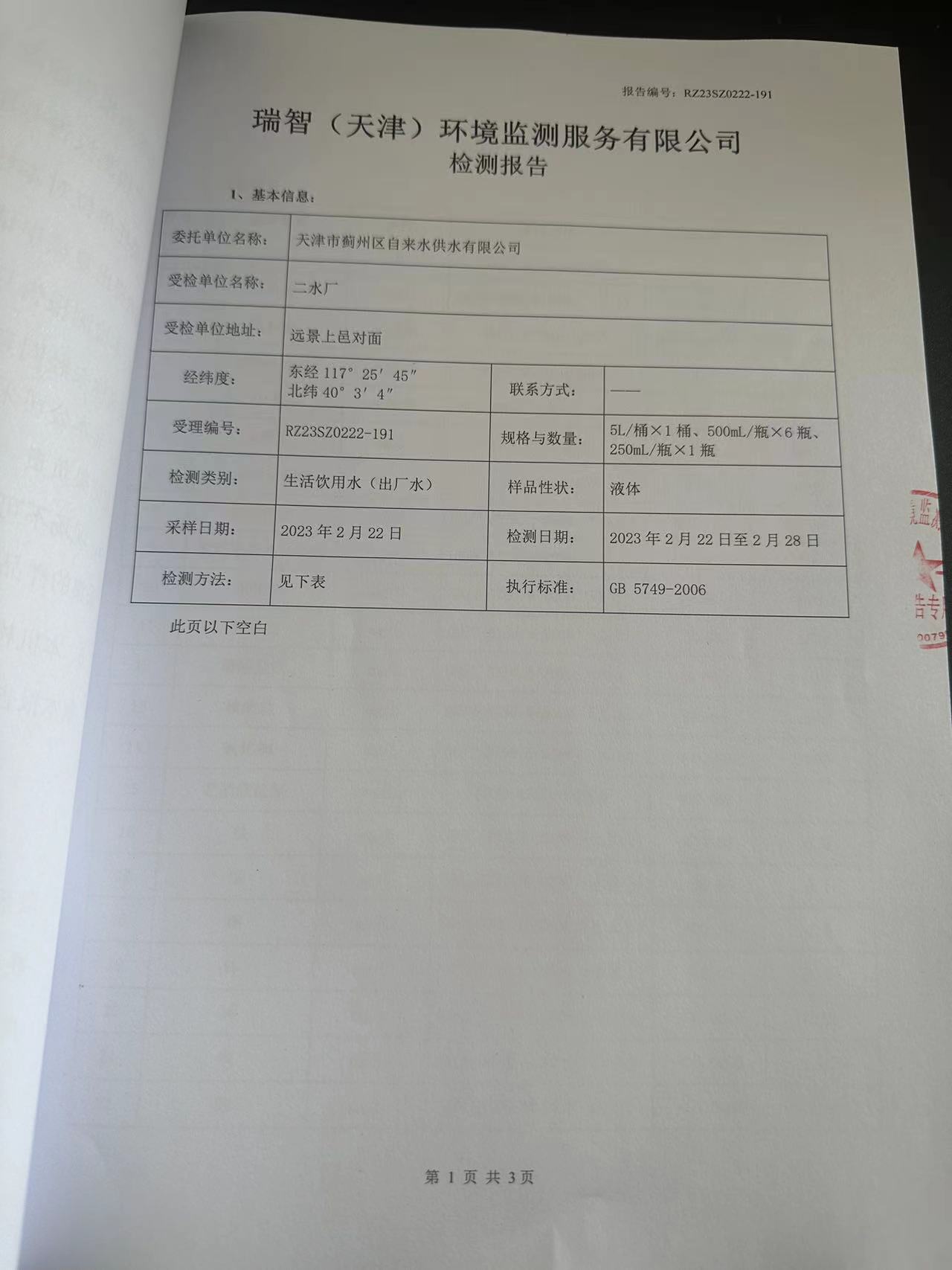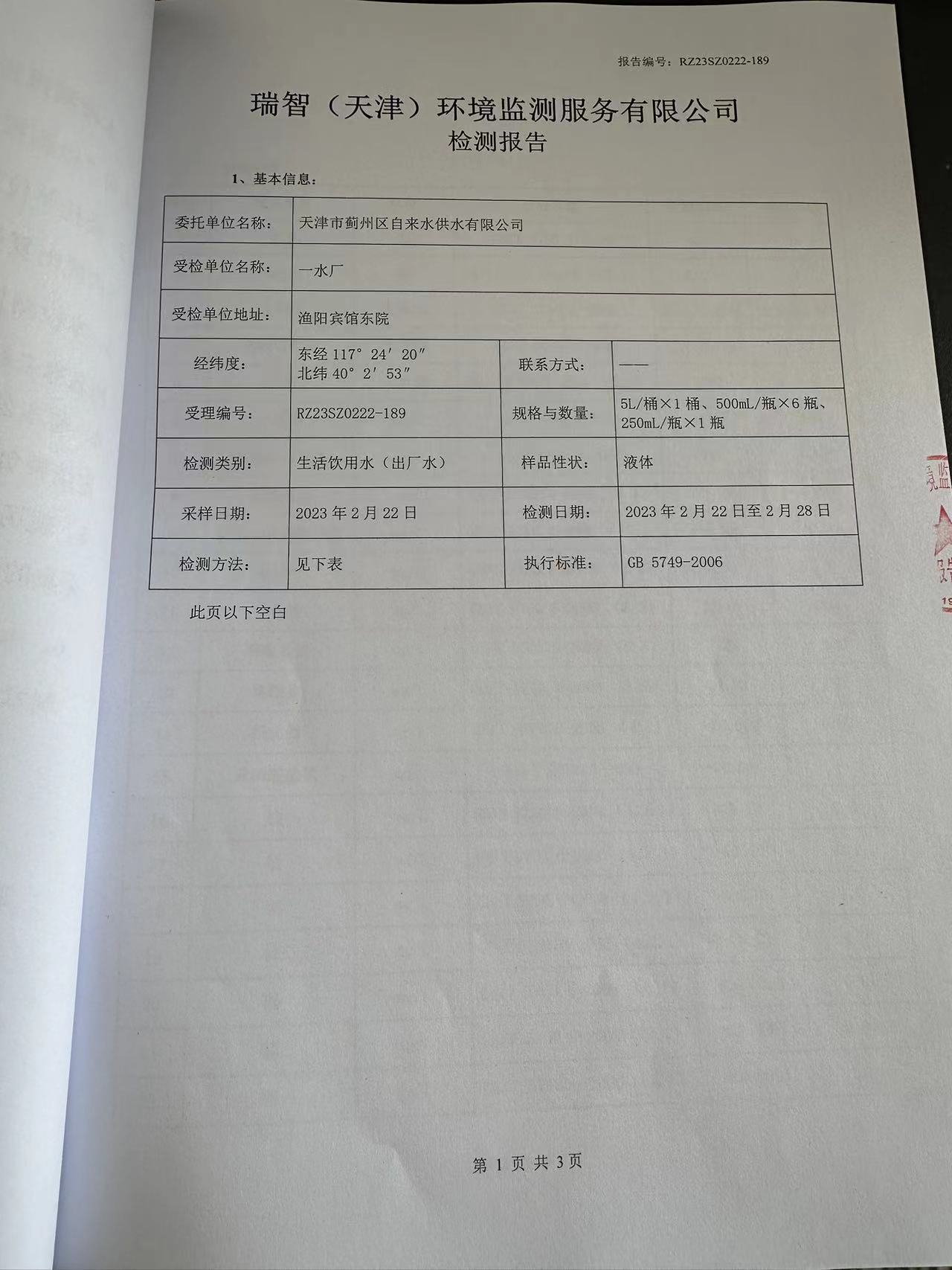 2023年2月份水質檢測報告