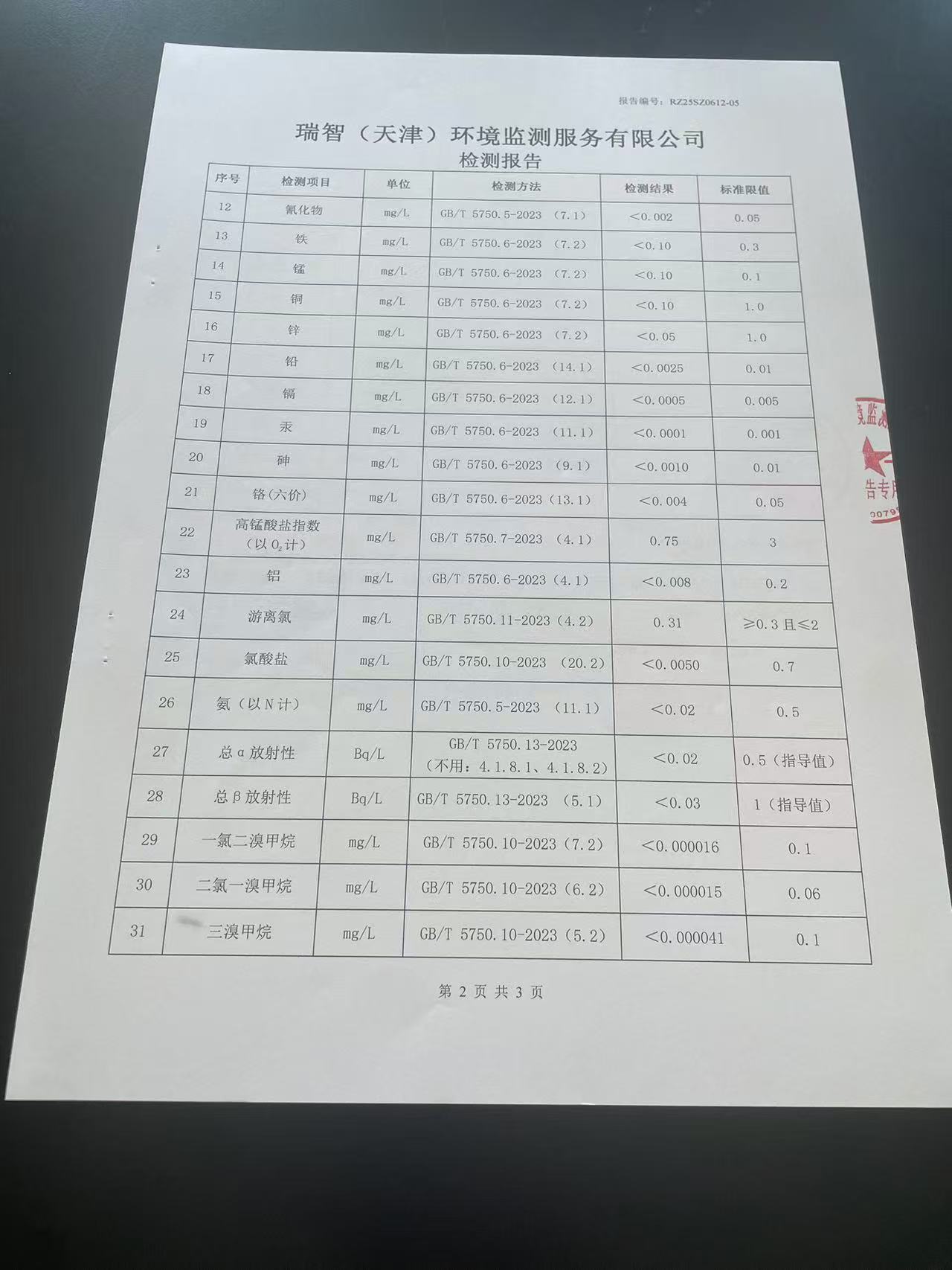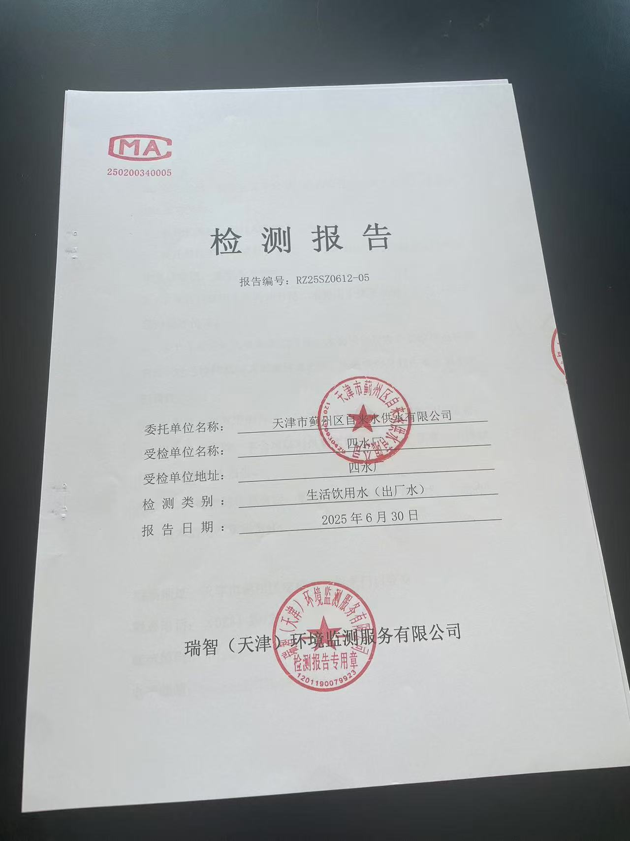 2025年6月份水質(zhì)檢測報告