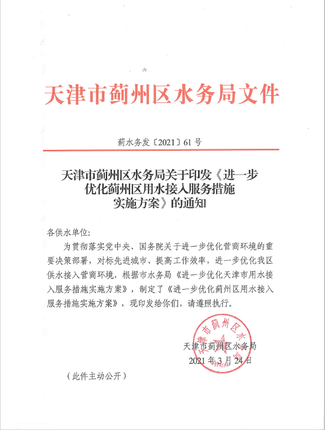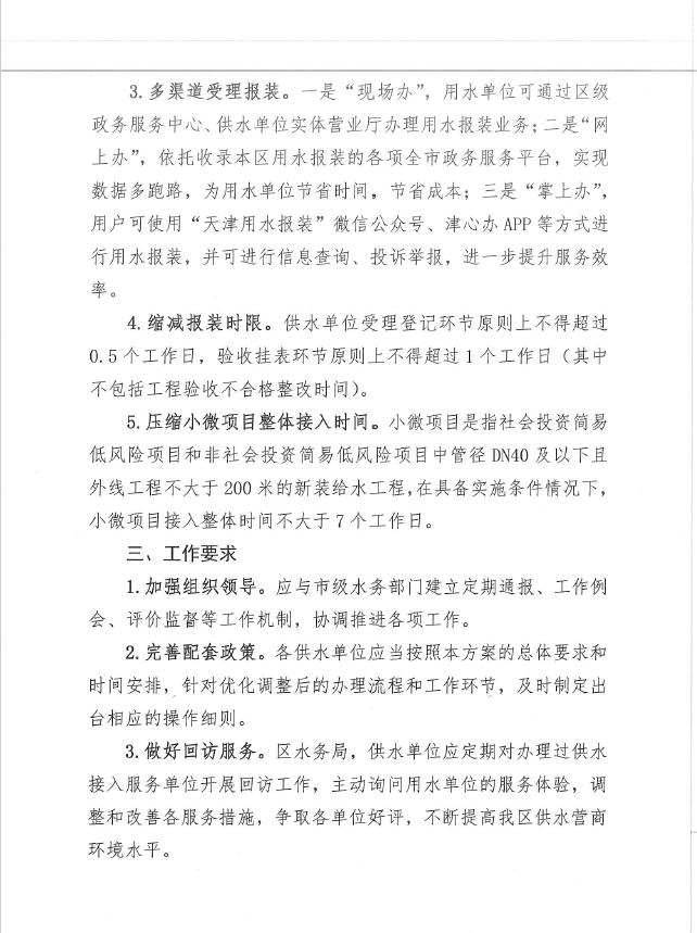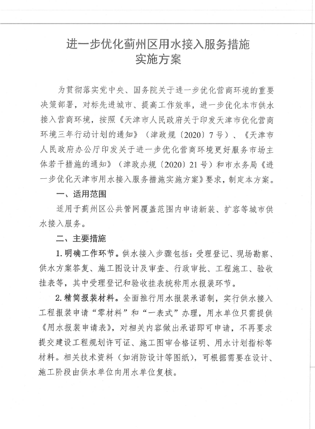 進一步優(yōu)化薊州區(qū)用水接入服務措施實施方案