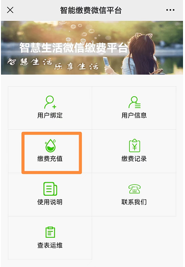 點(diǎn)擊繳費(fèi)充值,如果綁定了多塊水表,左右滑動選擇要繳納水費(fèi)的表具后點(diǎn)擊繳費(fèi)按鈕。如圖