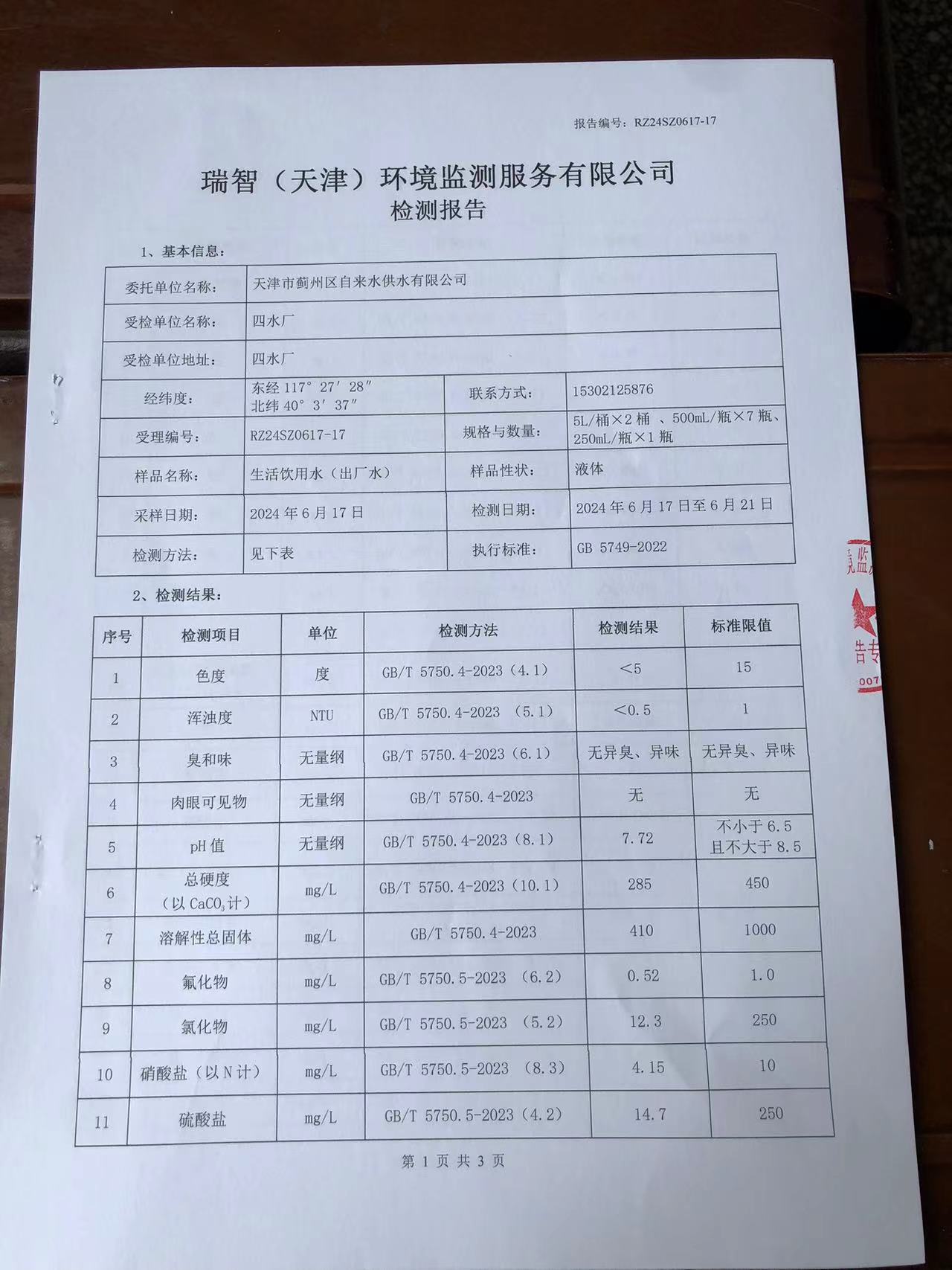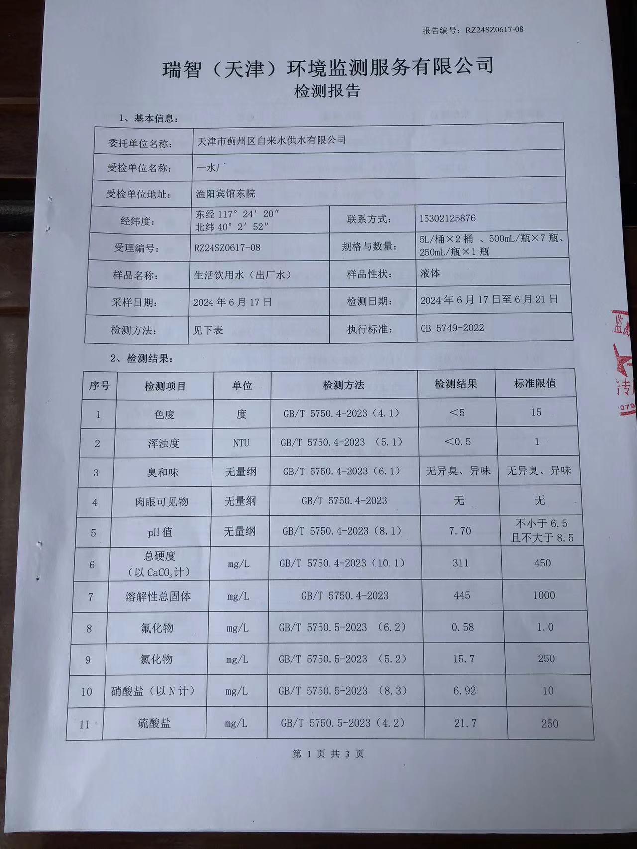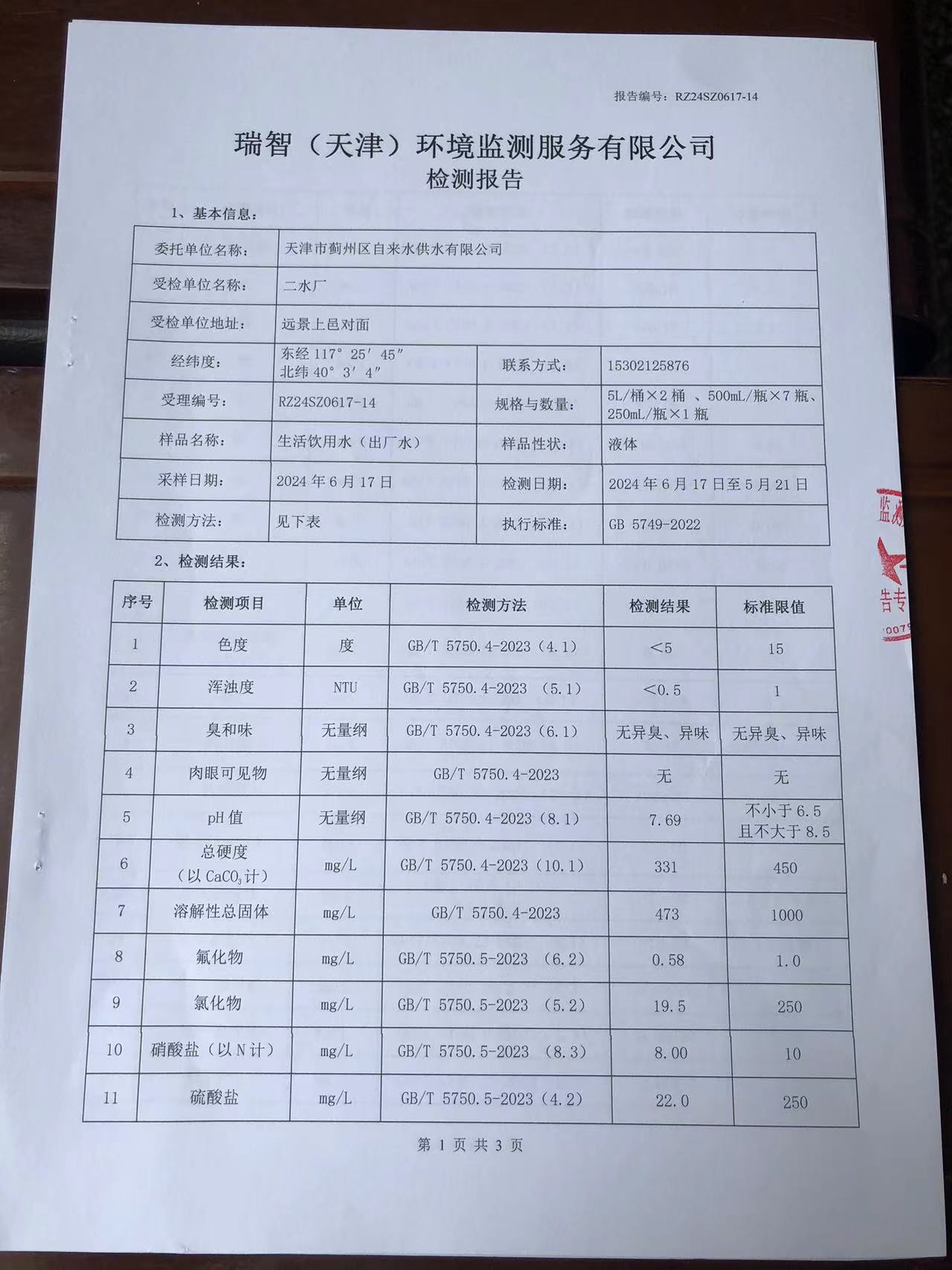 2024年6月份水質(zhì)檢測(cè)報(bào)告