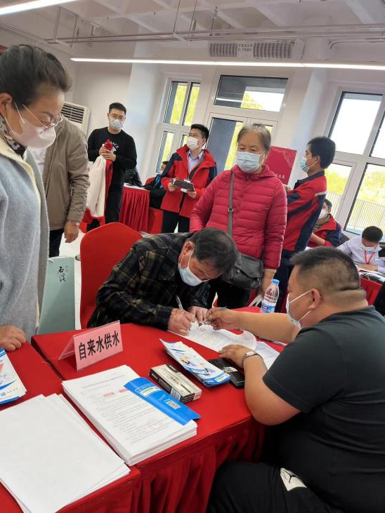 在收到格調(diào)石溪花園小區(qū)項(xiàng)目交房的消息后,我單位領(lǐng)導(dǎo)立即與小區(qū)開(kāi)發(fā)商進(jìn)行了溝通協(xié)商,由單位領(lǐng)導(dǎo)帶隊(duì),組織水費(fèi)核收大廳、工程科多名工作人員,于10月31日至11月2日前往交房現(xiàn)場(chǎng)給居民用戶辦理供用水手續(xù)。我單位工作人員現(xiàn)場(chǎng)為交房新用戶辦理供水手續(xù),并詳細(xì)講解智慧生活A(yù)PP下載及使用方法并附贈(zèng)APP使用手冊(cè),耐心解答用戶提出的疑問(wèn)。