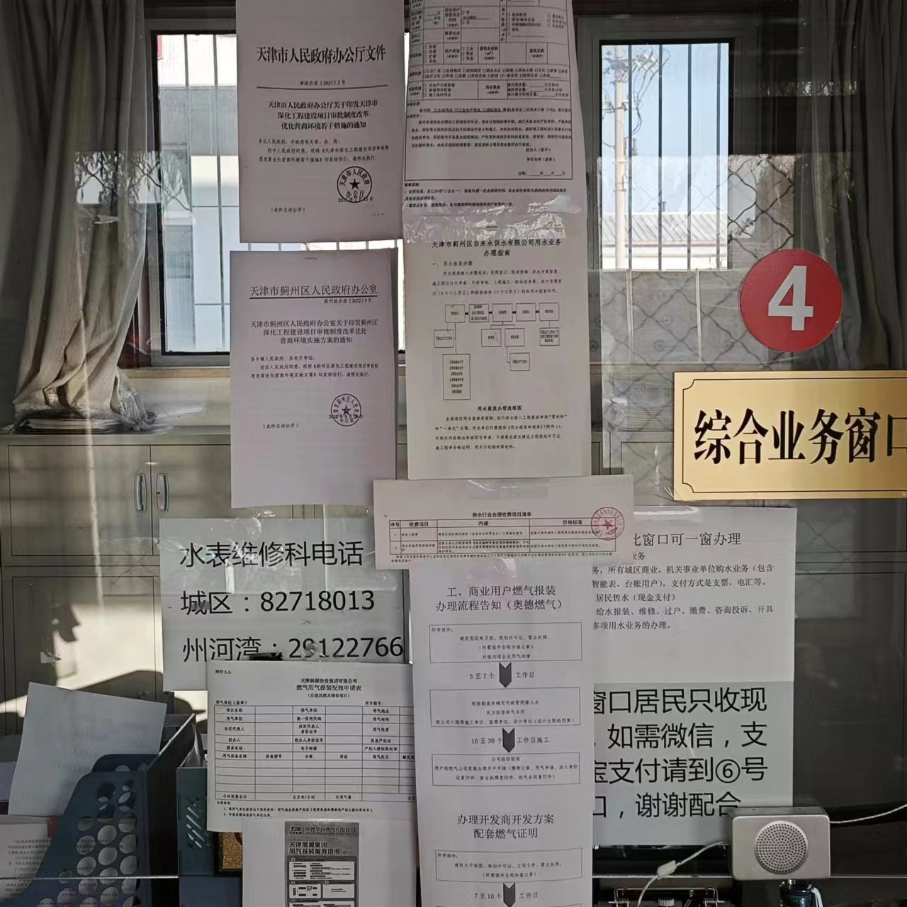 天津市薊州區(qū)自來(lái)水供水有限公司落實(shí)一窗綜合受理的有關(guān)文件精神,在供水營(yíng)業(yè)廳內(nèi)設(shè)置綜合業(yè)務(wù)窗口實(shí)現(xiàn)多項(xiàng)供水服務(wù)一窗式辦理。
